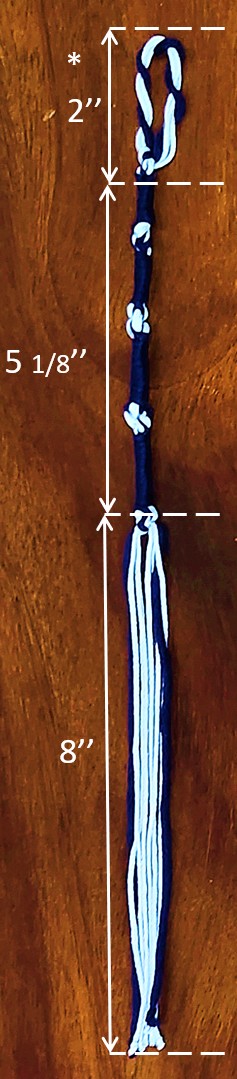 In this way, we obtain 16 white ends instead of only 6. By adding the blue thread, we get a total of 18 ends instead of 8. With this, we now have that the word “Tzitzit” has a gematria value of 590; we add 18 thread ends and 5 knots, for a total of 613.